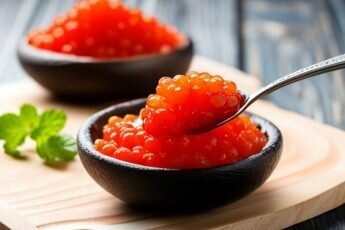 Красная икра — это богатый источник полезных питательных веществ, таких как белки, жиры, витамины