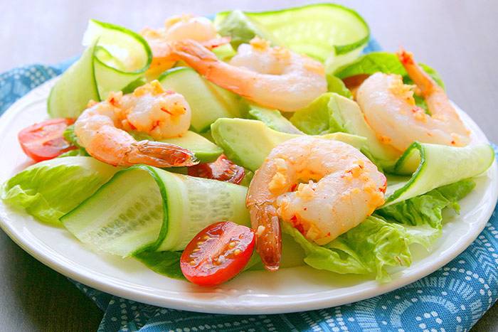 Лучше всего в салатах помогают раскрыть вкус креветок овощи, зелень, фрукты, рис, рыба и другие морепродукты. Заправляют их обычно майонезом, растительным маслом или заправками, приготовленными из нерафинированного оливкового масла. Вариантов салатов из креветок существует множество, а готовить их совсем не сложно, в чем вы сейчас убедитесь.