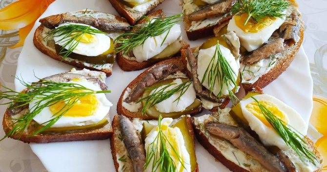 Бутерброды со шпротами, яйцом и соленым огурцом