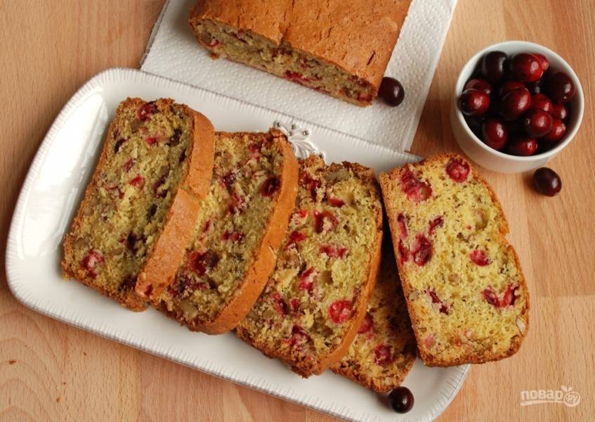 Приятную кислинку сладкому тесту придает клюква, которая прекрасно сохраняет форму в выпечке и восторженно лопается во рту при поедании кекса. Попробуйте – я надеюсь, Вам очень понравится.
