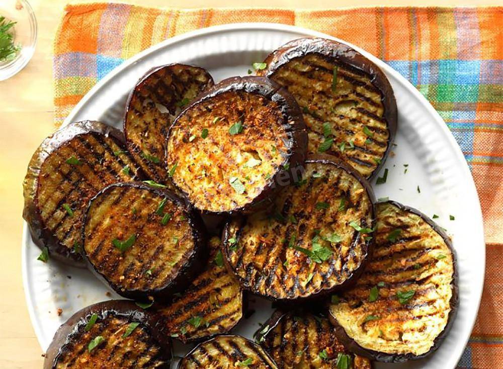 Рецепт баклажанов-гриль на решетке очень прост: необходимое количество «синеньких» (подготовленных к употреблению) нарезать наискось кружочками, чтобы они получились достаточно крупными. Посолить, выложить на решетку (можно вместо нее взять шампуры) и запекать над горячими углями. Хорошо пойдет это блюдо в сочетании с острым чесночным соусом.