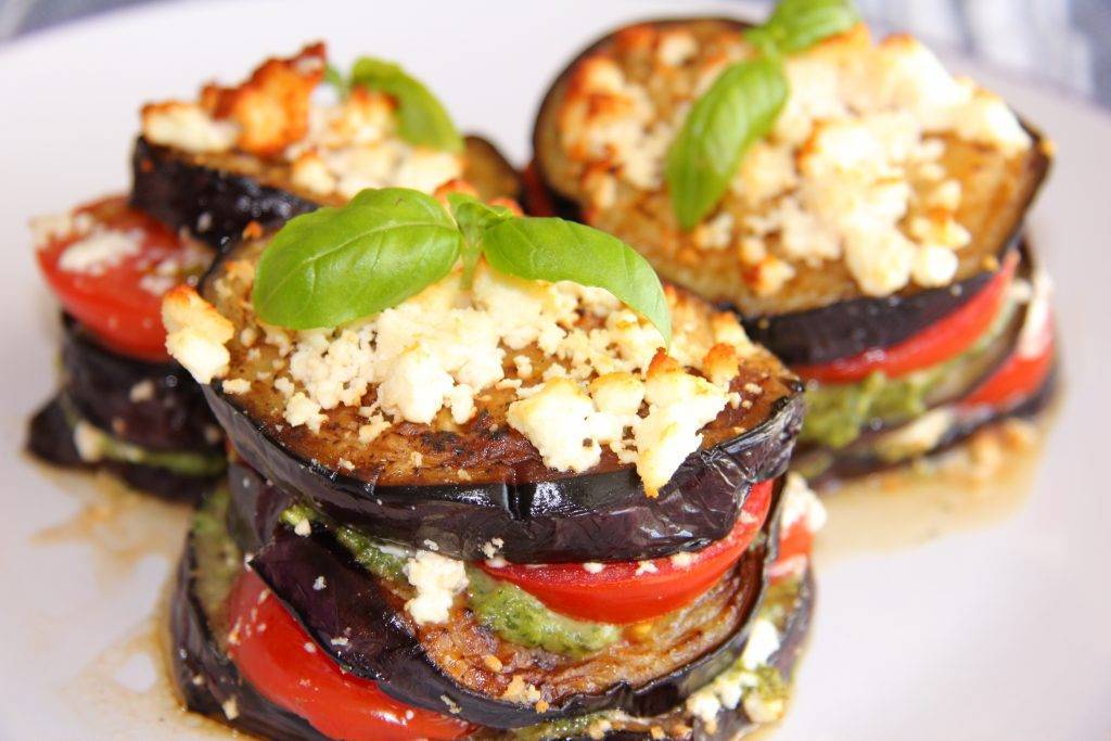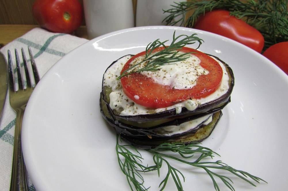 - Подавайте овощные башенки в тёплом виде, украсив зеленью и свежими овощами. Отличительной особенностью этого блюда является минимальное количество подсолнечного масла. Дело в том, что во время жарки, баклажаны и кабачки впитывают большое количество масла, и блюдо в итоге получается жирным и довольно тяжелым. А если овощи запечь, тогда они получатся мягкими, сочными и легкими. Приятного аппетита!