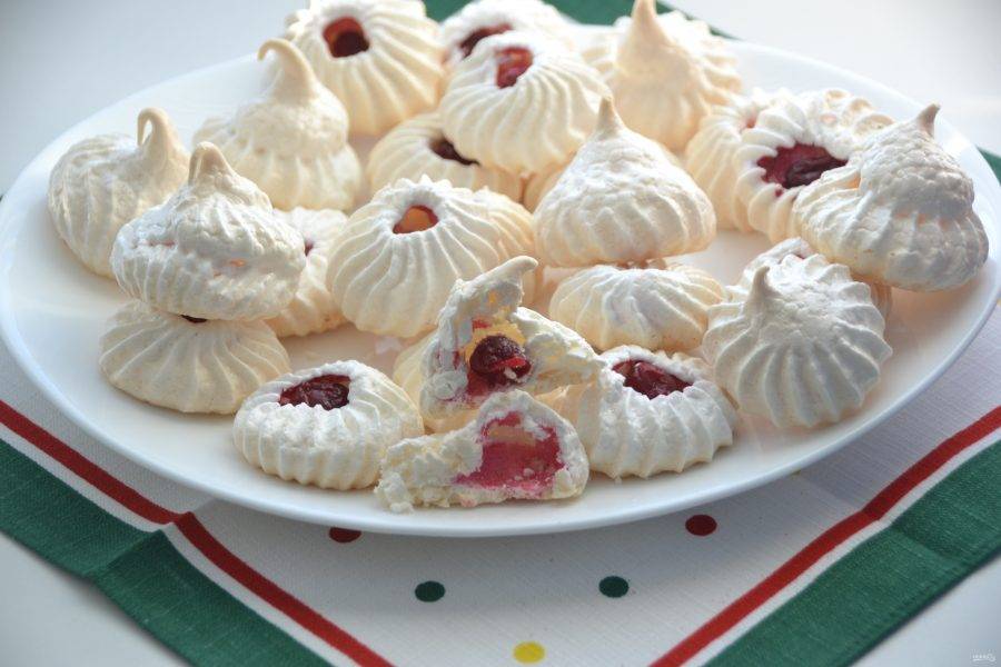 Кстати, если в вашей кухне достаточно сухо и тепло, то швейцарские меренги можно даже не готовить в духовке – они смогут и самостоятельно хорошо просохнуть на обычном столе, даже не изменив свою форму и цвет.