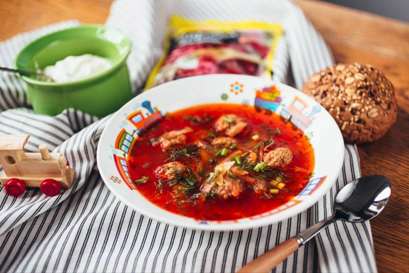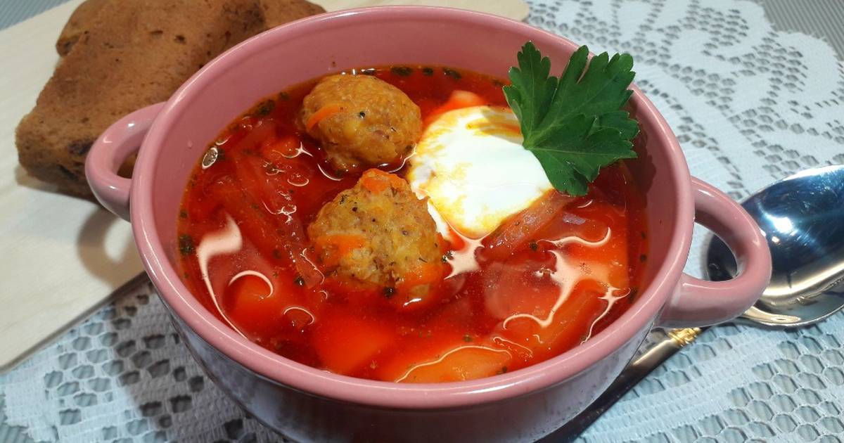 Готовить вкусный борщ одно удовольствие — не надо ждать пока свариться мясной бульон. Мясные фрикадельки варятся очень быстро и сразу со всеми ингрединтами в супе — значительная экономия времени,а вкус получается необыкновенный!