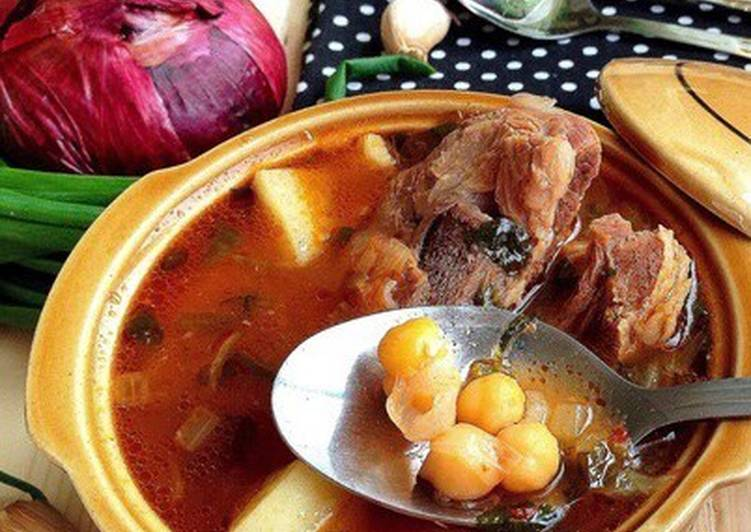 Этот бараний суп, как и многие другие блюда восточной кухни, принято готовить в казане. В условиях нашей действительности, можно использовать и толстостенную чугунную кастрюлю.