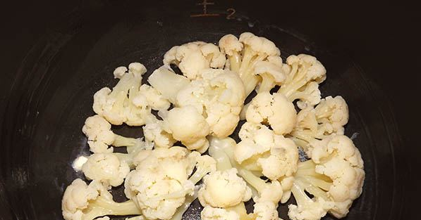 Это блюдо мы будем готовить из замороженной цветной капусты, которая прошла термическую обработку, то есть варку в подсоленной воде в течение 6 – 7 минут. Поэтому какой-либо особой подготовки она не требует. Просто выкладываем соцветия капусты в глубокую тарелку и оставляем в таком виде на 25 — 30 минут. За это время она почти полностью разморозится.