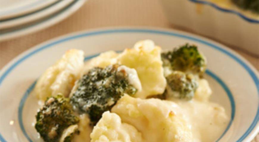 Горчичный соус добавляет изюминку во вкусовые качества цветной капусты. Чтобы приготовить такой соус, необходимо смешать растопленное сливочное масло, 50 грамм муки и горчичный порошок. Сливки (100 грамм) смешать с молоком (100 мл) и постепенно вливать в мучную массу. После этого необходимо полить капусту приготовленным соусом и тушить в мультиварке в течение 30 минут. По вкусу сверху можно посыпать тертым сыром. Так будет в разы вкуснее.