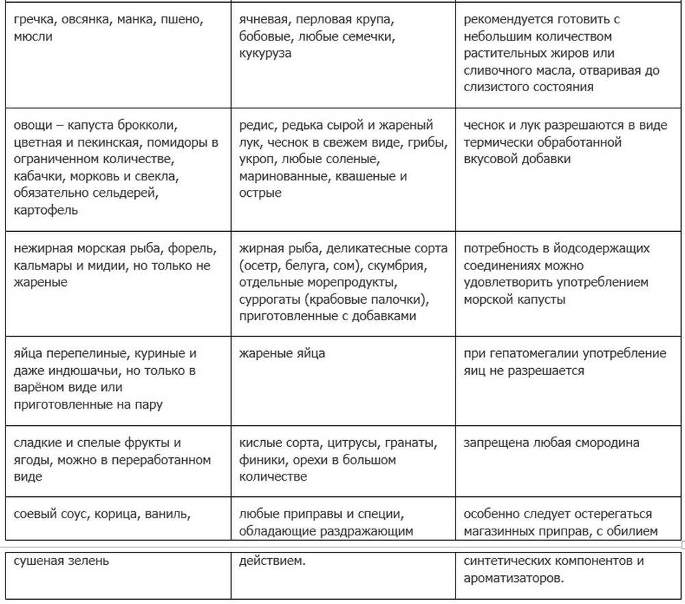 Полезные продукты питания для печени | Можно в отдельных случаях | Вредные продукты для печени (что нельзя) |