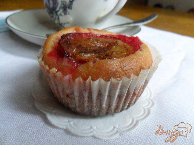 Растопленное масло немного остудите. Добавьте молоко и яйцо. А также сахар, ванилин. Взбейте венчиком до однородности. Муку просейте вместе с разрыхлителем. Питьевую соду загасите лимонным соком. Соедините муку с содой. Промешайте.