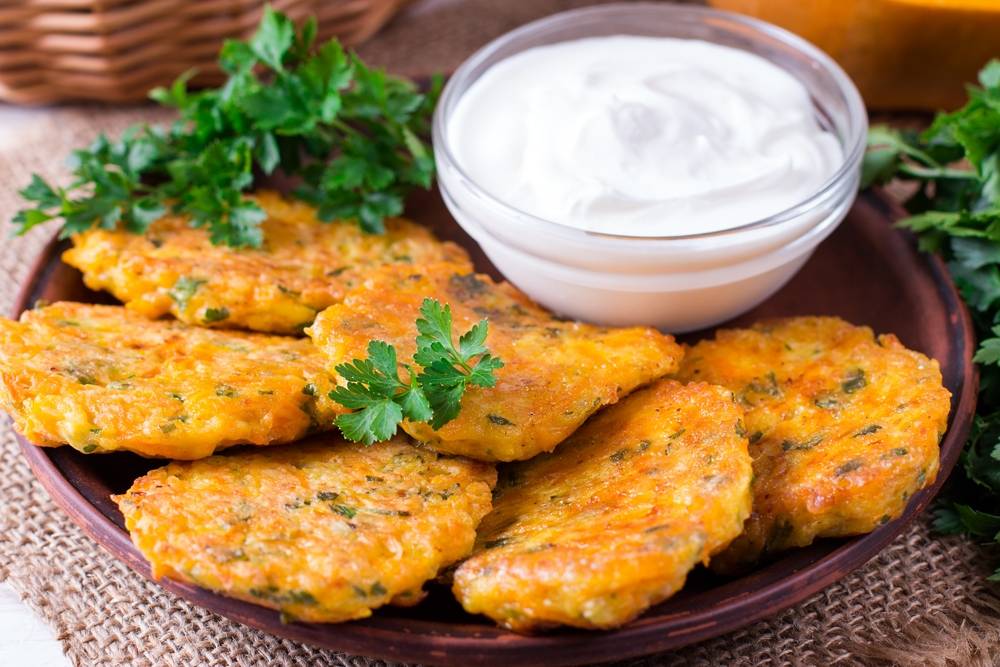 Драники из кабачка и тыквы готовятся быстрее, чем классические. Блюдо имеет легкий свежий вкус, поэтому к нему идеально подойдет нежный соус на основе йогурта.