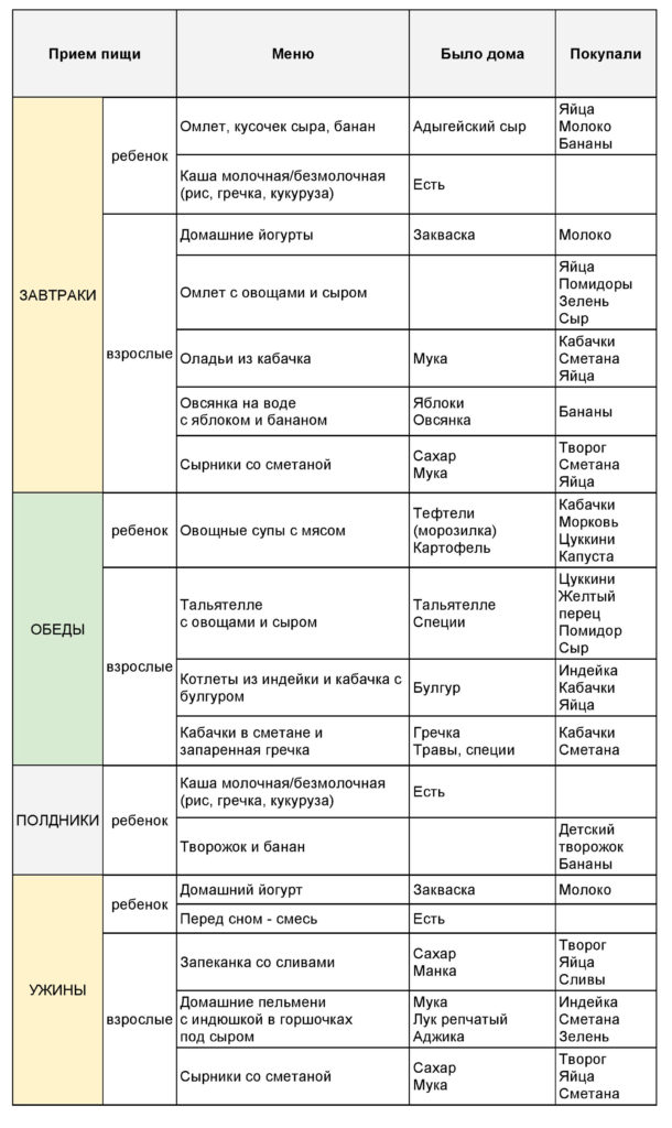 - На питание уходит меньше денег, ведь в закупке будет минимум ненужных продуктов.