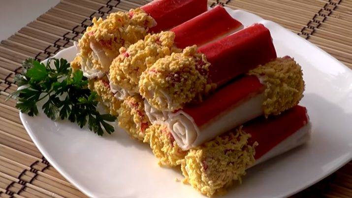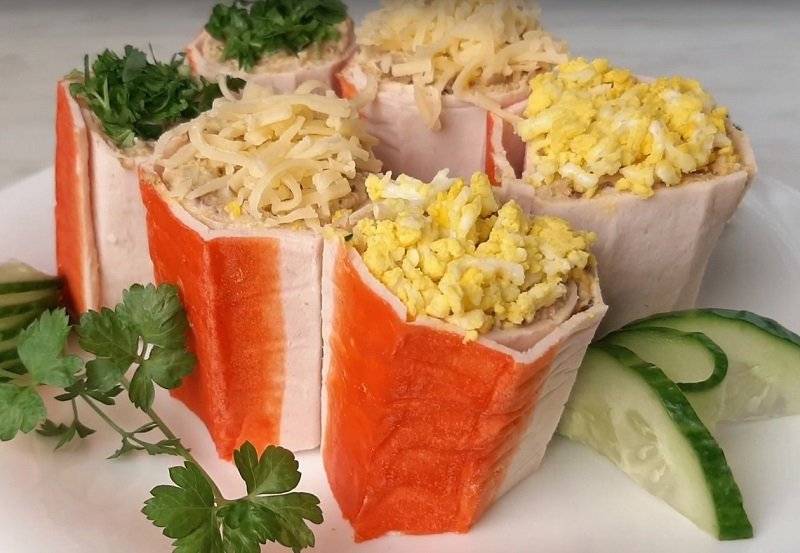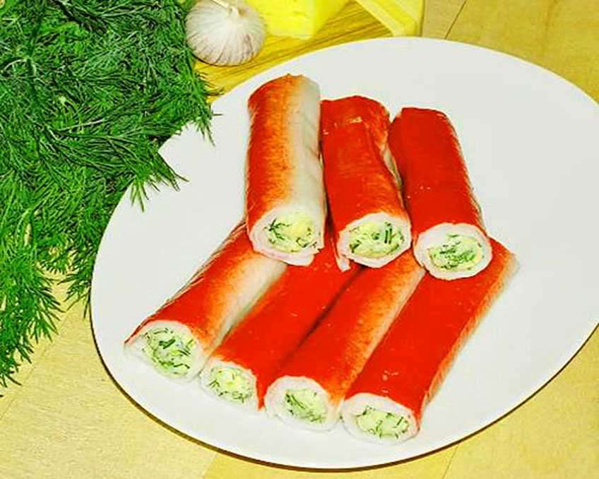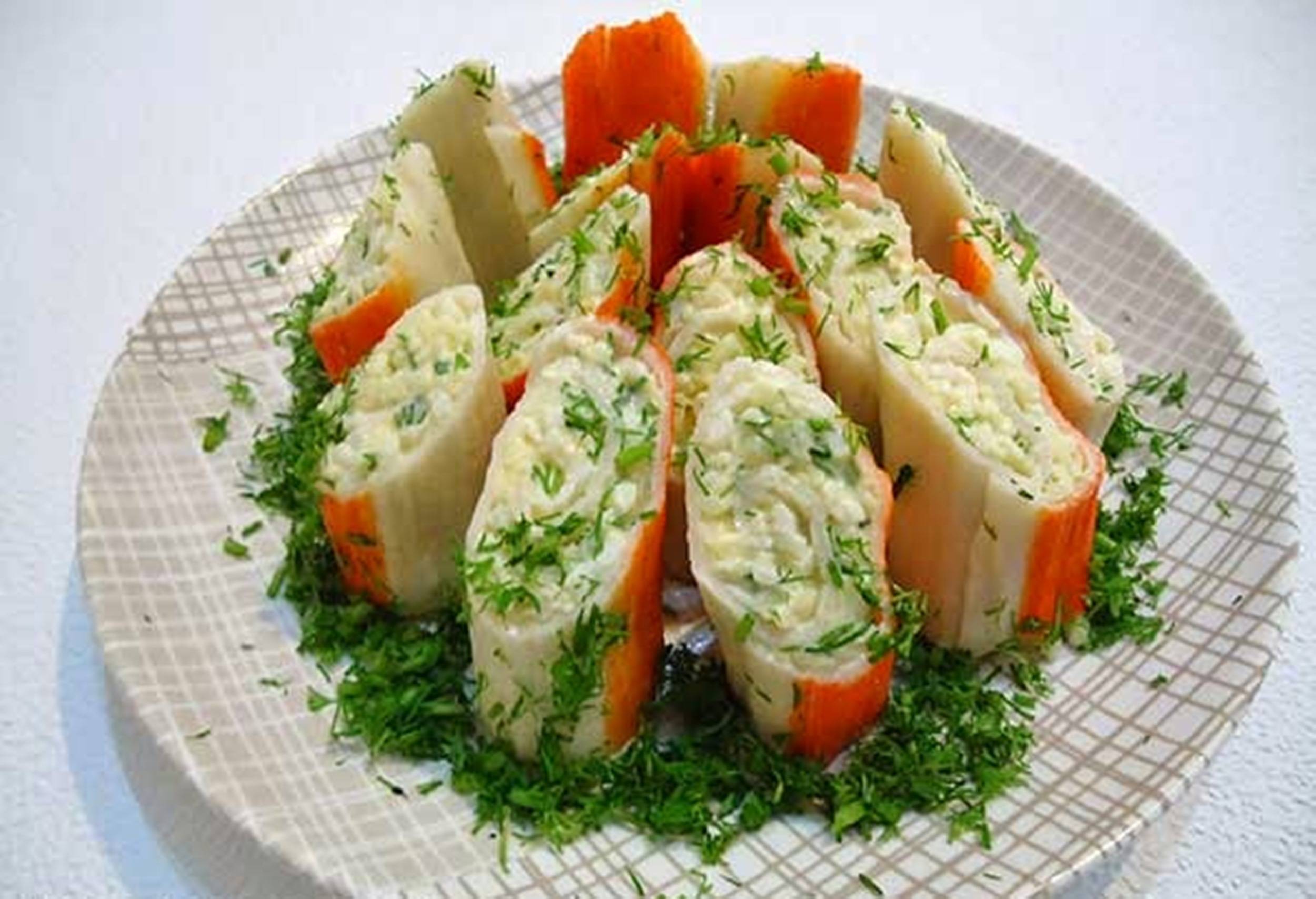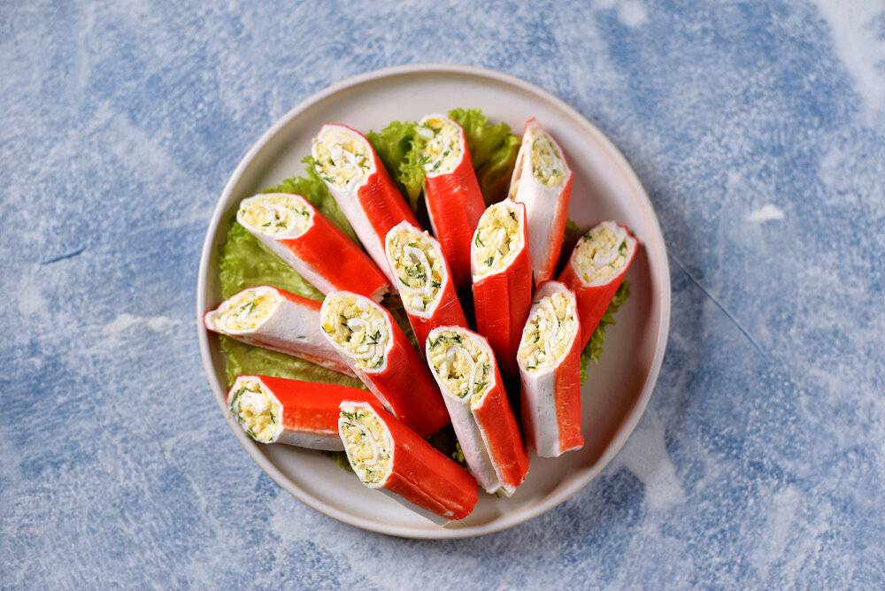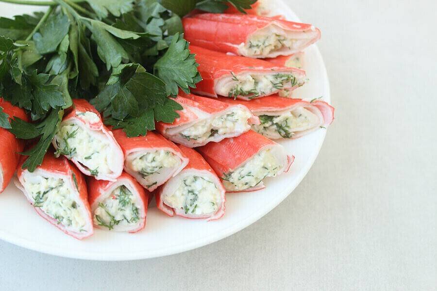 4 Подаем крабовые палочки фаршированные разными начинками.