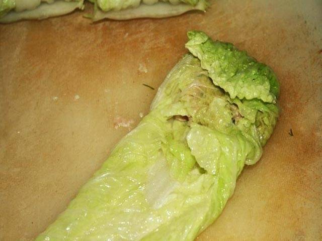 и сверните голубец, заправляя края листа внутрь, чтобы начинка не вылетела.