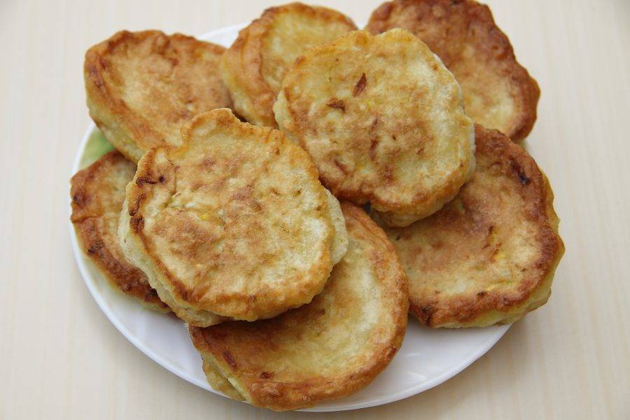 5. Готовое тесто выкладываем столовой ложкой на сковороду с большим количеством растительного масла.