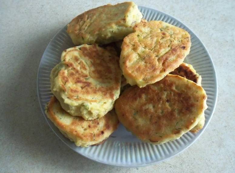 Предлагаю вам такой экспресс вариант для завтрака или перекуса на скорую руку. Если со вчерашнего дня у вас осталось пюре, приготовьте из него утром вкуснейшие оладьи с колбаской и сыром.