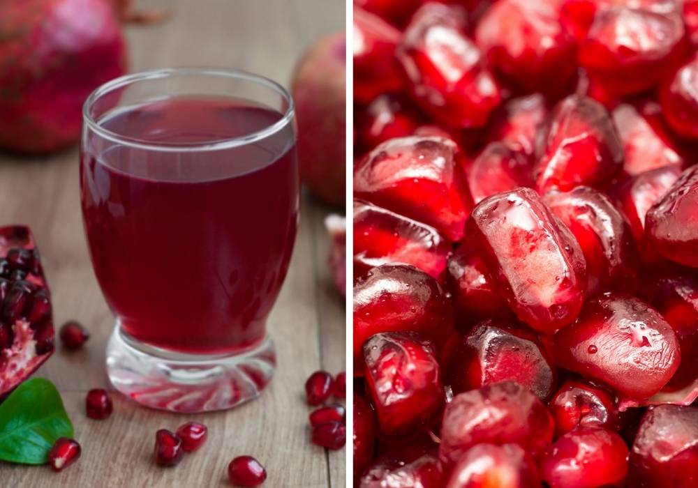 - сок из гранатовых зерен. Приготавливать его можно разными способами, которые указывались выше.