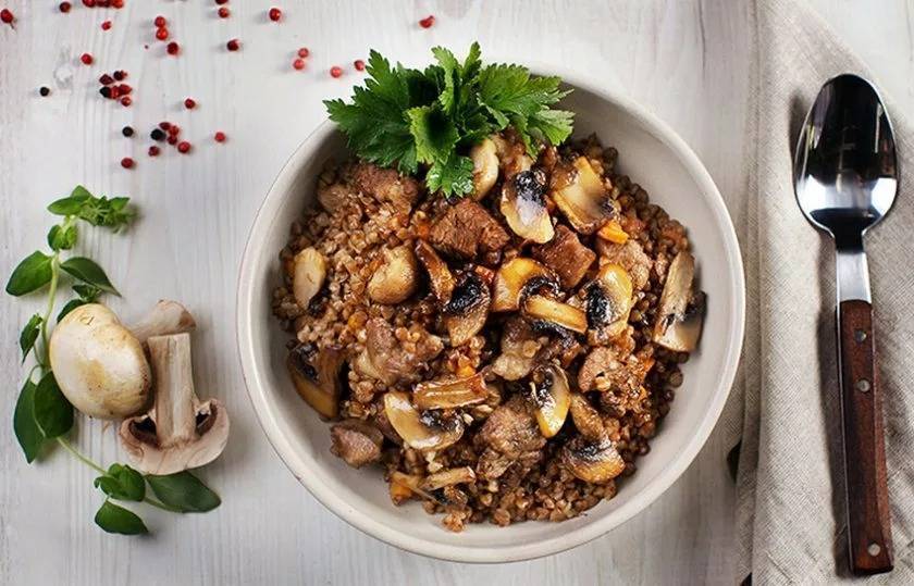 Гречка с белыми грибами