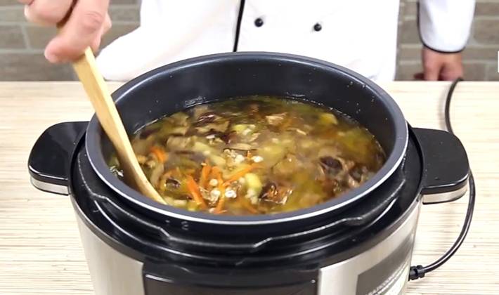 Сытный суп из сушеных грибов в мультиварке Редмонд