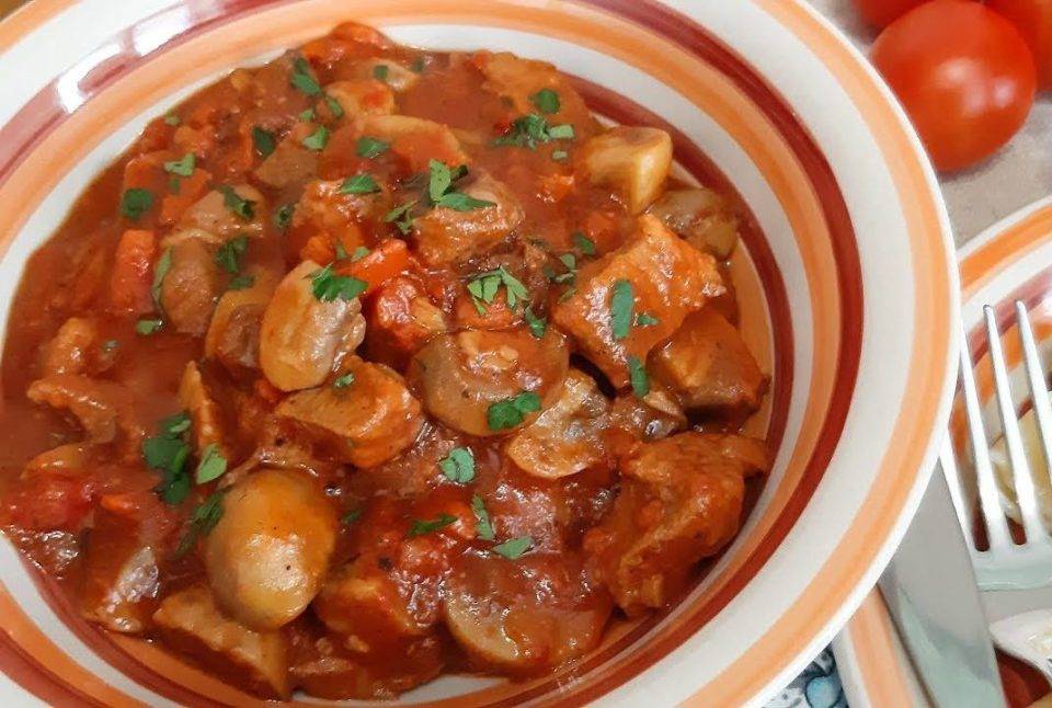 Гуляш из индейки с подливкой отлично подойдет для сытного ужина.
