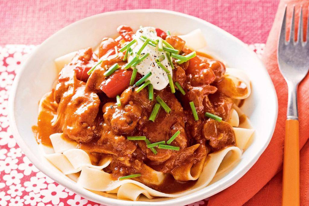Если гуляш вам покажется густоватым, то разбавьте соус смесью сметаны и молока. К такому угощению отлично подойдет нежное пюре.