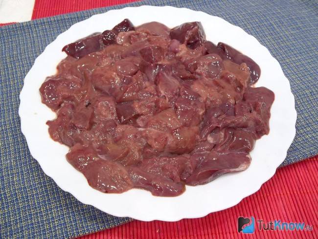- По истечении 40-60 мин, субпродукт следует извлечь из миски, снова промыть и нарезать на небольшие кусочки.