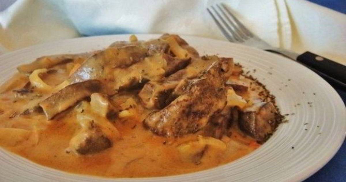 Рецепт вкусной печенки тушеной с луком и морковью в сметане