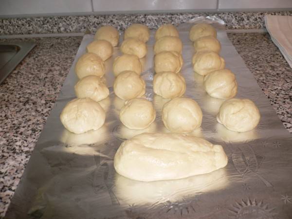 - Готовое тесто следует разделить на несколько кусков (количество кусков должно соответствовать количеству пирожков).
