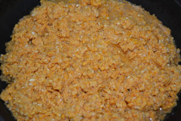5) дождитесь, пока грибы остынут, а после — перекрутите лисички через мясорубку два раза. Если хочется получить однородную массу, можно однократно пропустить через мясорубку, а после — разбить комочки с помощью блендера;