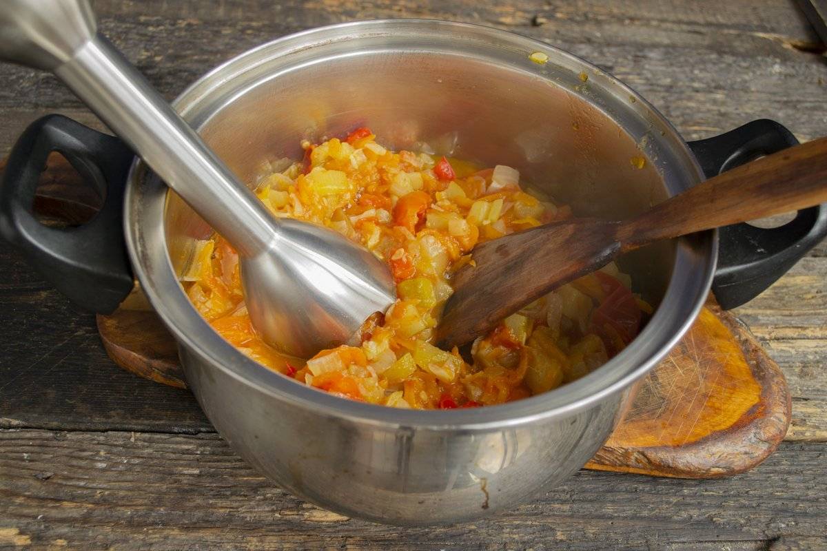 - Измельчить с помощью блендера и выложить в глубокий, толстый сотейник.