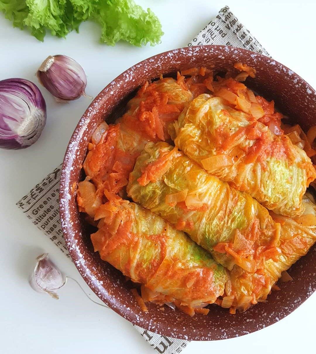 Классические голубцы давно всем известны, а как вам такой рецепт – овощные? Звучит также аппетитно, а готовится быстрее и легче. Если вы решили исключить мясные продукты из рациона, придерживаетесь поста, диеты или другого образа жизни, то мой рецепт вам очень пригодиться. Овощи отлично сочетаются как с капустой, так и с рисом, поэтому ваш обед получится необычным, вкусным и полезным. Сегодня возьмем морковку и лук. Эти корнеплоды всем доступны, причем в любое время года, поэтому приготовить наше блюдо не составит труда.