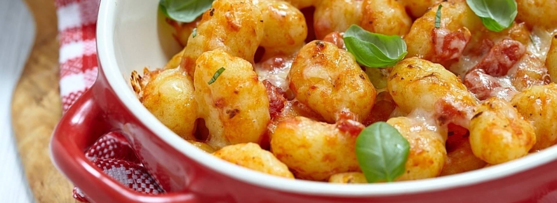 Уложите ньокки в жаропрочную форму, залейте соусом и отправьте в разогретую до 200 градусов духовку на 15 минут.