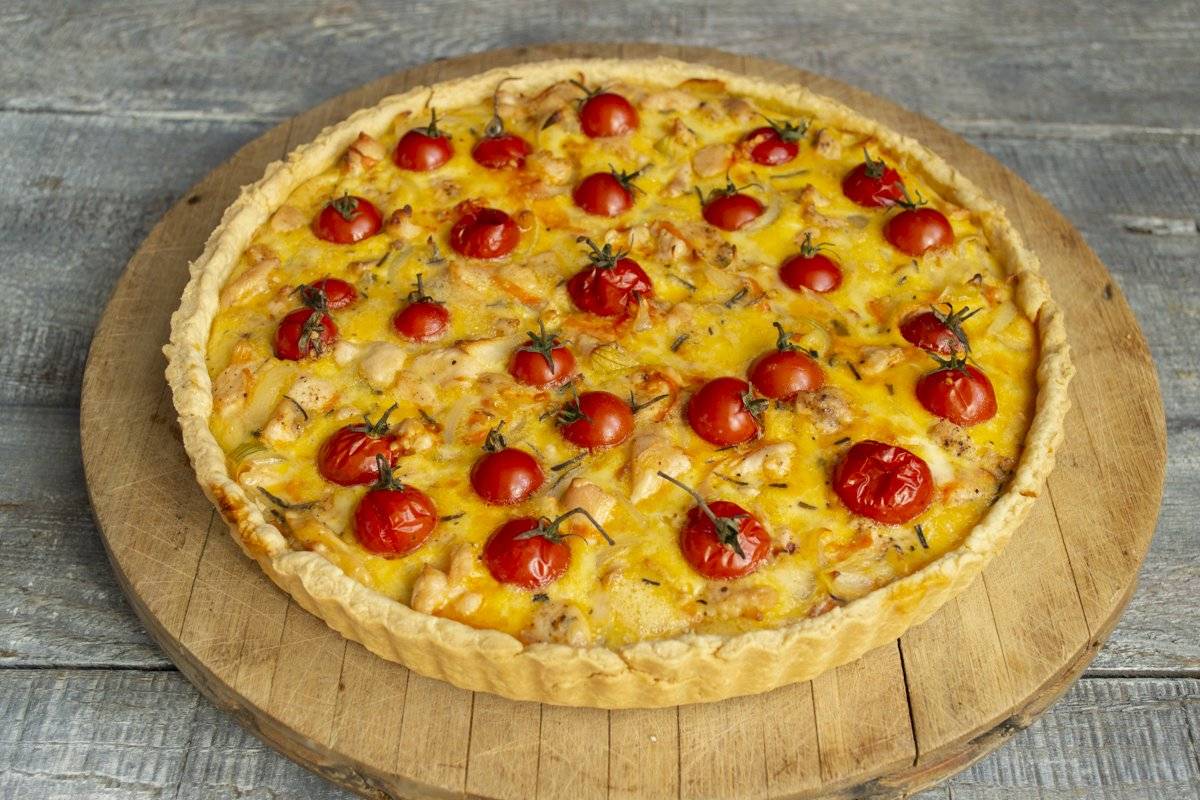 Вкусный киш с курицей и помидорами черри