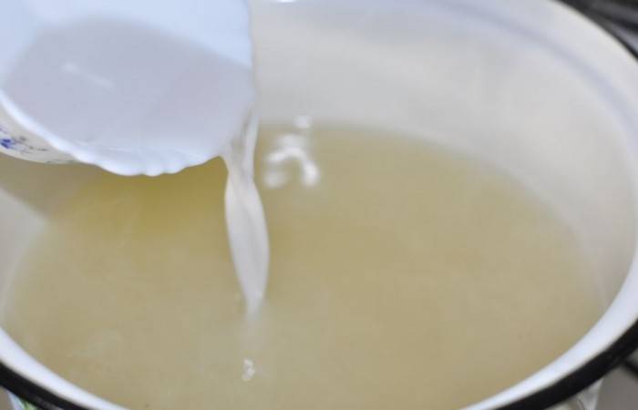 - Разведенный в холодной жидкости крахмальный концентрат влить в отвар, довести до закипания, постоянно помешивая.