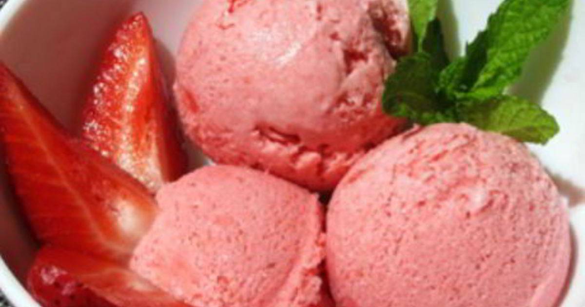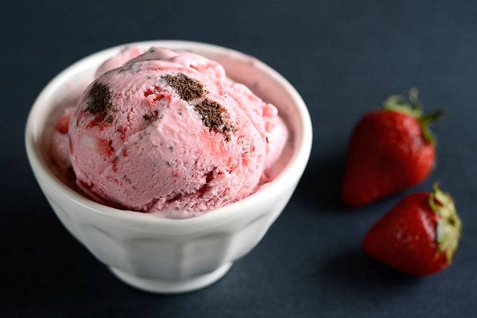 - Некоторые варианты клубничного мороженого готовятся без использования молочных продуктов. Вместо них основой служат пюре из банана или авокадо. В результате получается вегетарианский и одновременно диетический десерт.
