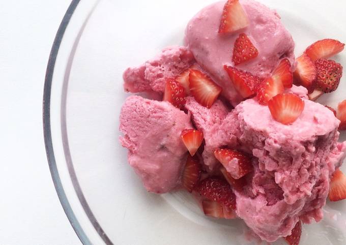 Диетическое домашнее ванильно-клубничное мороженое
