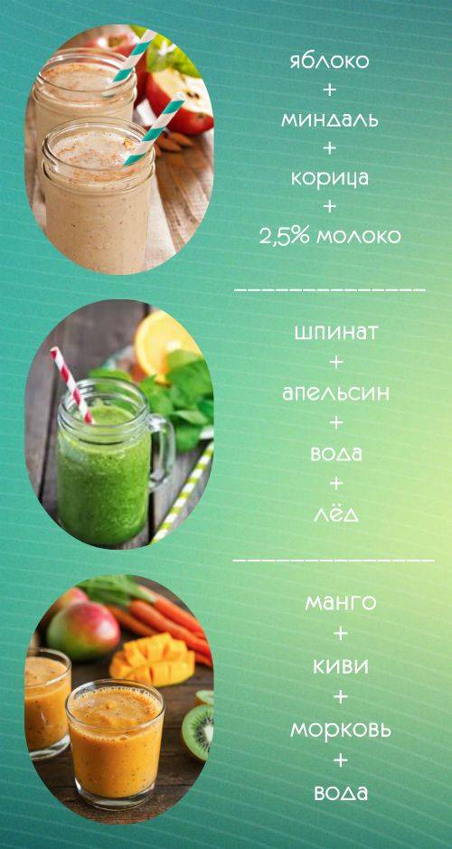 Если же вы всерьез взялись за коррекцию фигуры, то советую делать выбор в пользу коктейлей для похудения на завтрак и поздний ужин вместо приема пищи. В обед ограничиваться белым мясом или рыбой на пару, в духовке или вареными, а еще два перекуса составлять из разных вариаций молочных продуктов, злаков, фруктов и овощей.