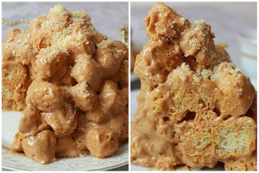 Инструкция приготовления этого лакомства похожа на рецепт торта из кукурузных палочек, но готовое изделие больше напоминает рулет.