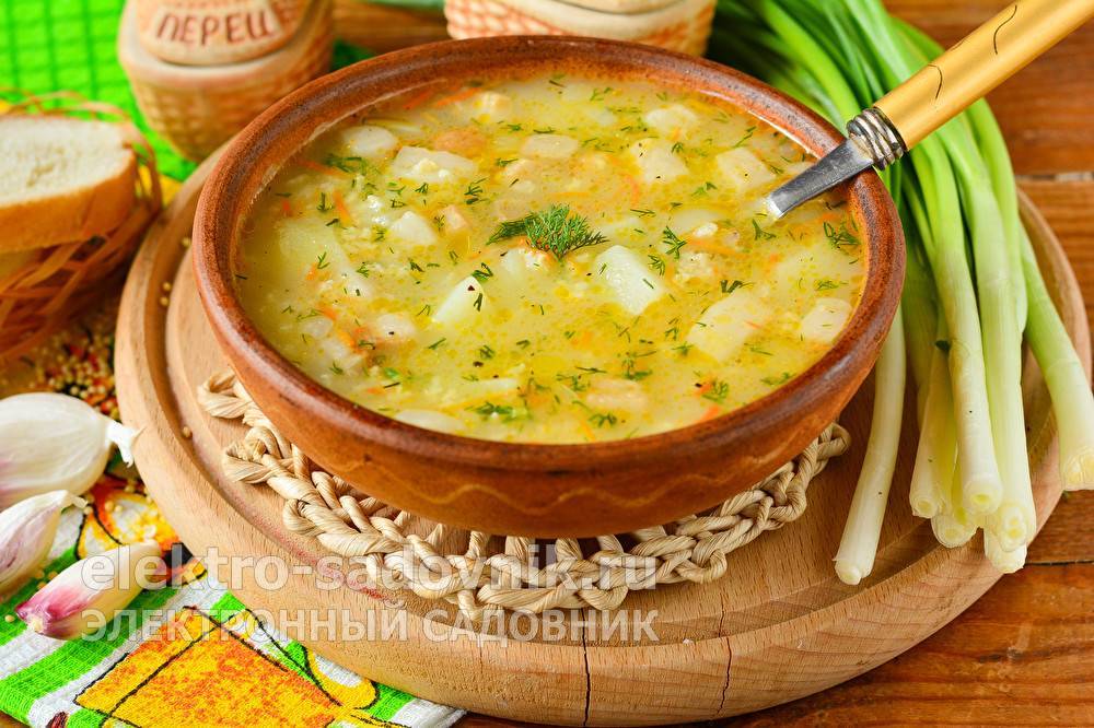 - пшено – 50 г, картофелины – 3 шт.;