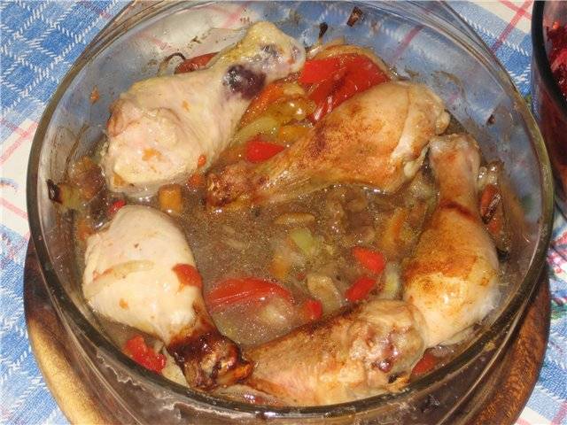 Сытное кушанье готово. Оказывается, можно обойтись и без гриля. Получилась офигенная курица, тающая во рту.