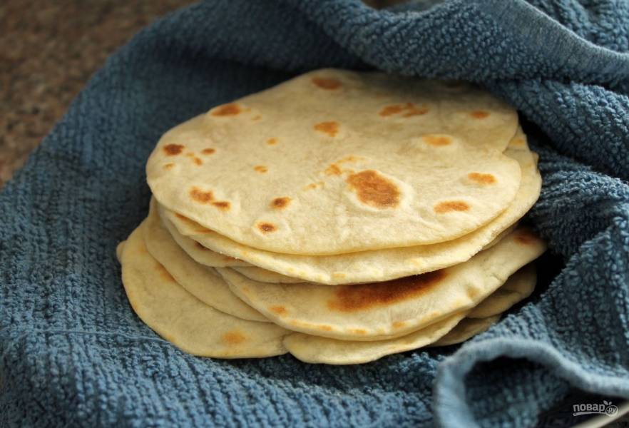 3. Делим тесто на небольшие кусочки, раскатываем в тонкие лепешки и обжариваем их на сухой сковороде с двух сторон.