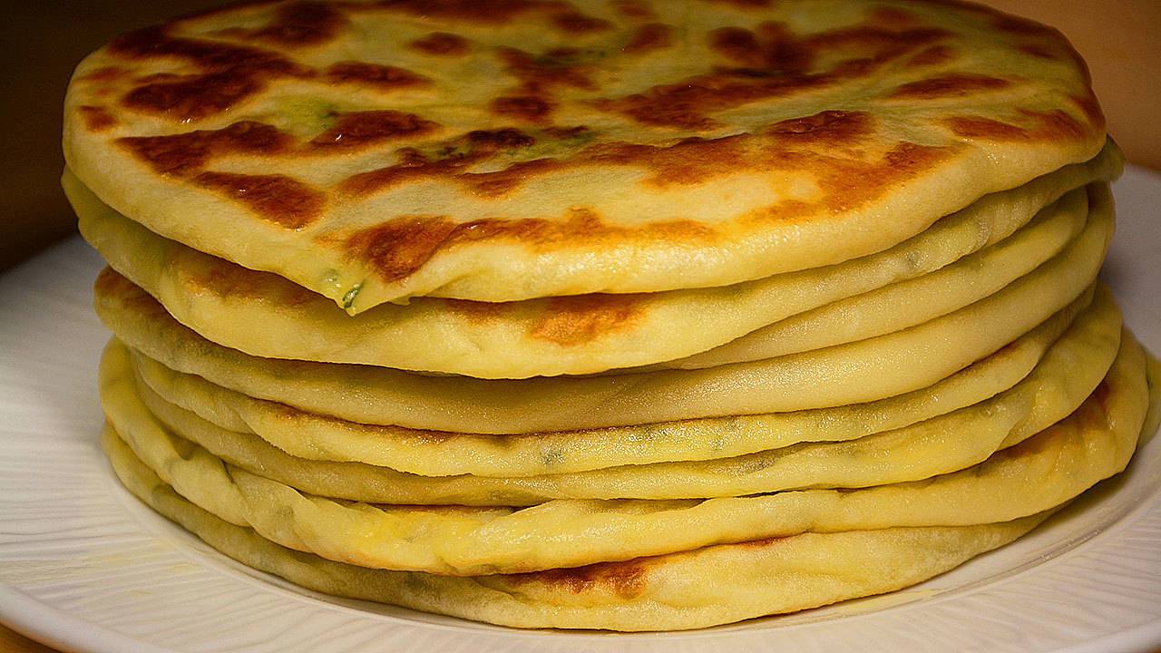 Мягкие, нежные лепешки, похожие на пирожочки. В состав начинки входит творог и сыр. С ароматом зеленого лука.