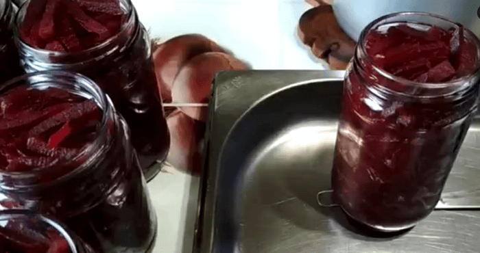 Для консервирования на зиму маринованной свёклы в банках целиком корнеплоды отбирают одного размера, 5—7 см в диаметре.