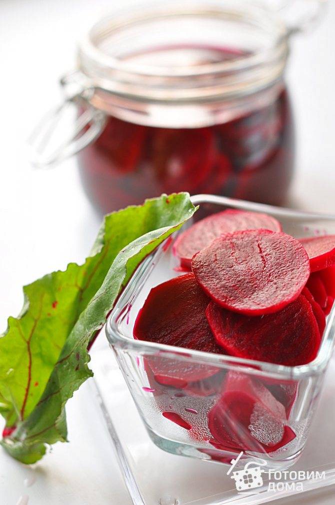 7. А мариноваться свекла будет в холодильнике. При t порядка +4…+6 °C – самое место ей на нижней полке. Или в холодном погребе – там она приготовится не хуже.