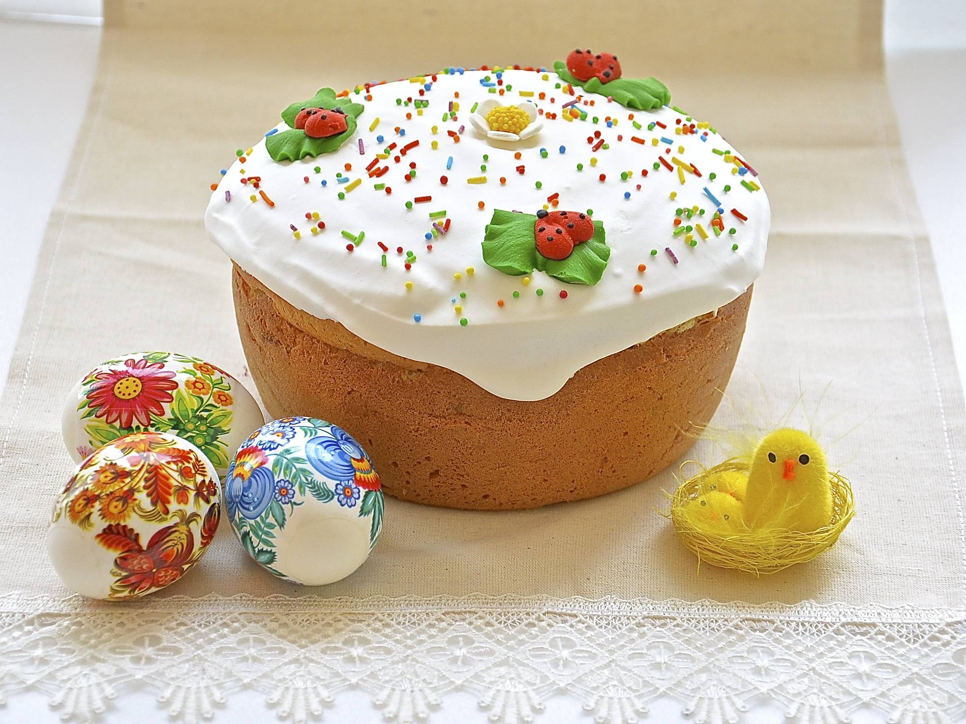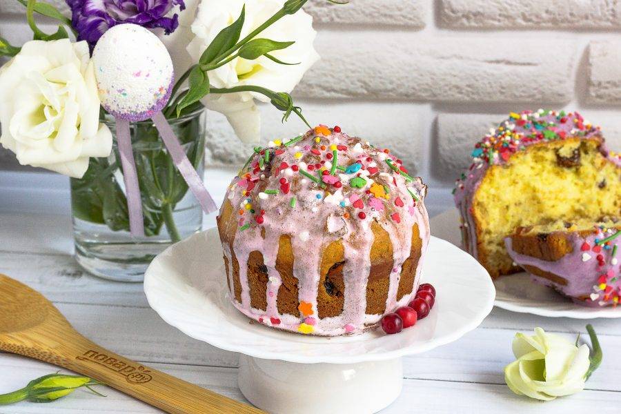 5. В самом конце покройте получившийся пасхальный кулич приготовленной глазурью и украсьте его посыпкой.