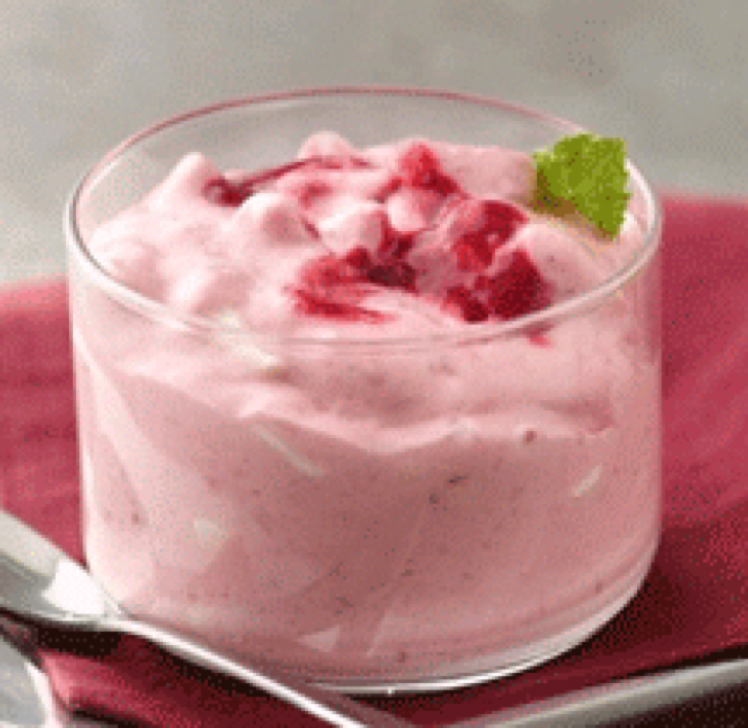 - Ягод. Клубнику, малину и вишню без косточек взбивают при помощи блендера так, чтобы получилось ягодное пюре. Готовый продукт смешивают со взбитыми ягодами и подают к столу.