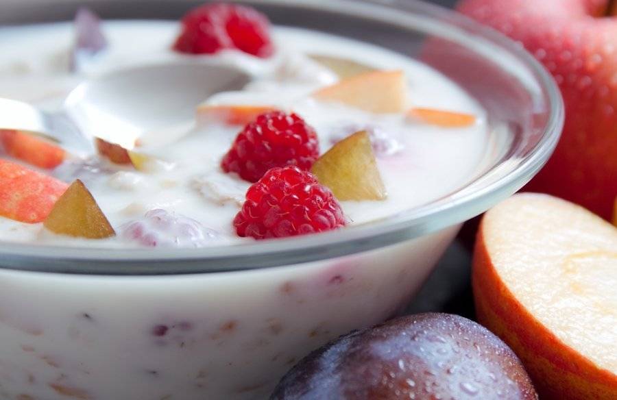 Кроме кисломолочки разрешено есть фрукты, богатые клетчаткой (бананы, персики, груши, яблоки), овощи, сухофрукты, отварную рыбу и мясо.