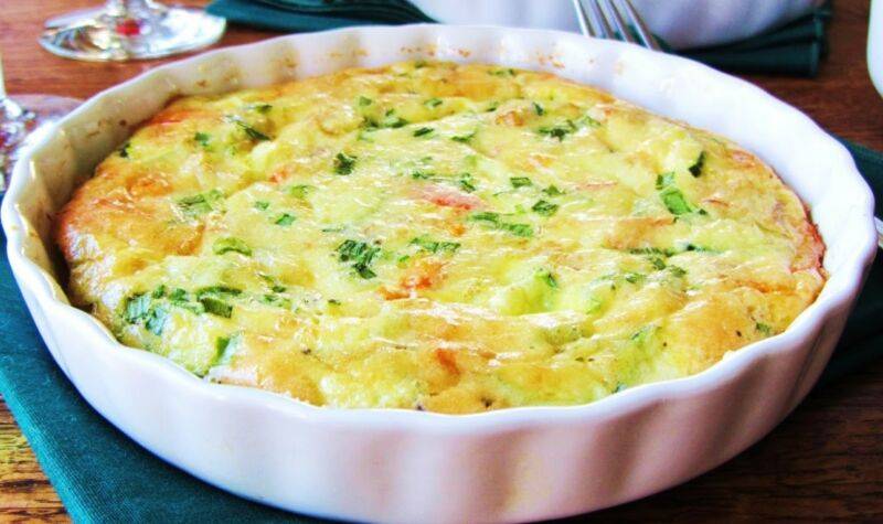 Вариант 3: Омлет с овощами в духовке с брокколи, луком-пореем, кабачком и сыром