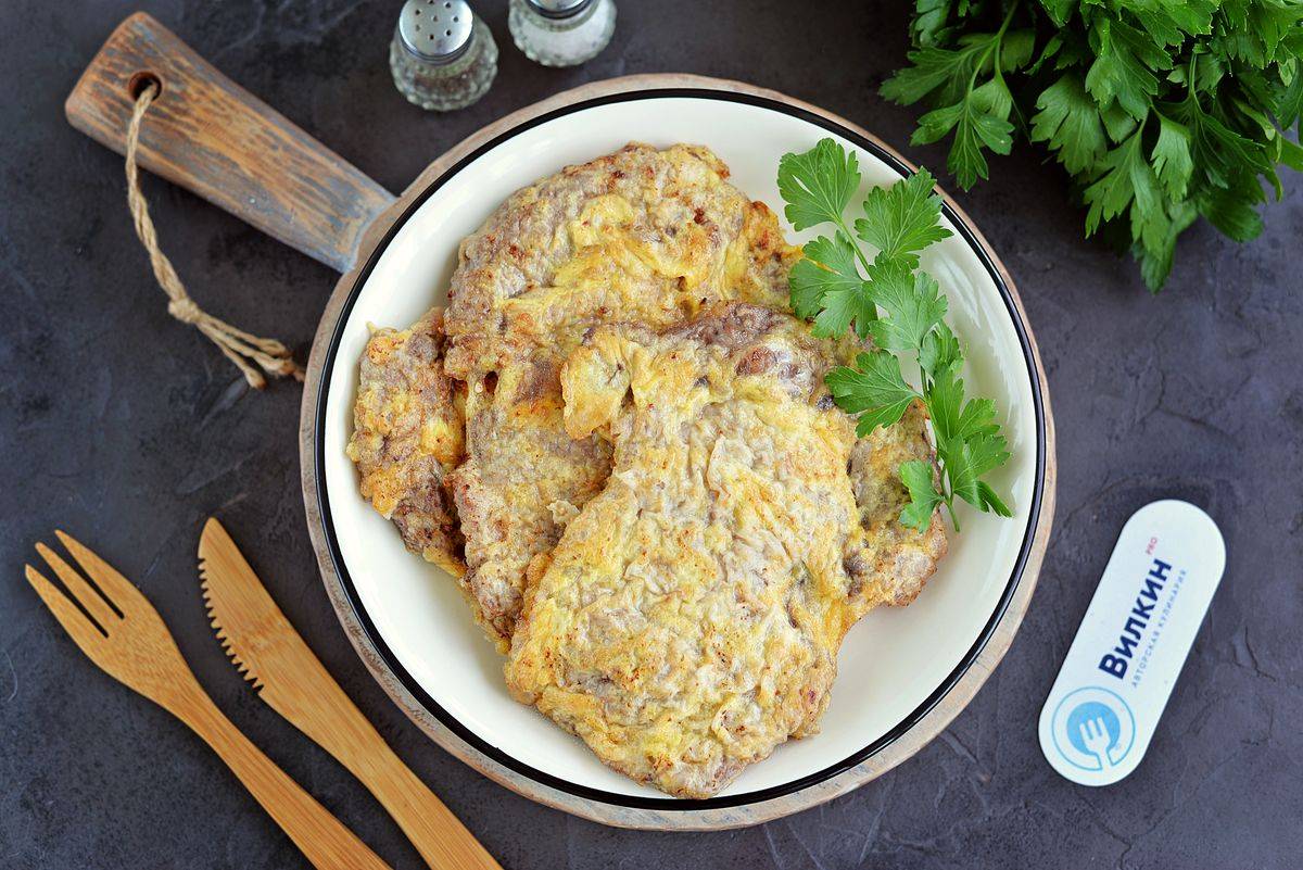 Вкусные, нежные и сочные отбивные из говядины в панировке из манной крупы с пикантными горчичными нотками.