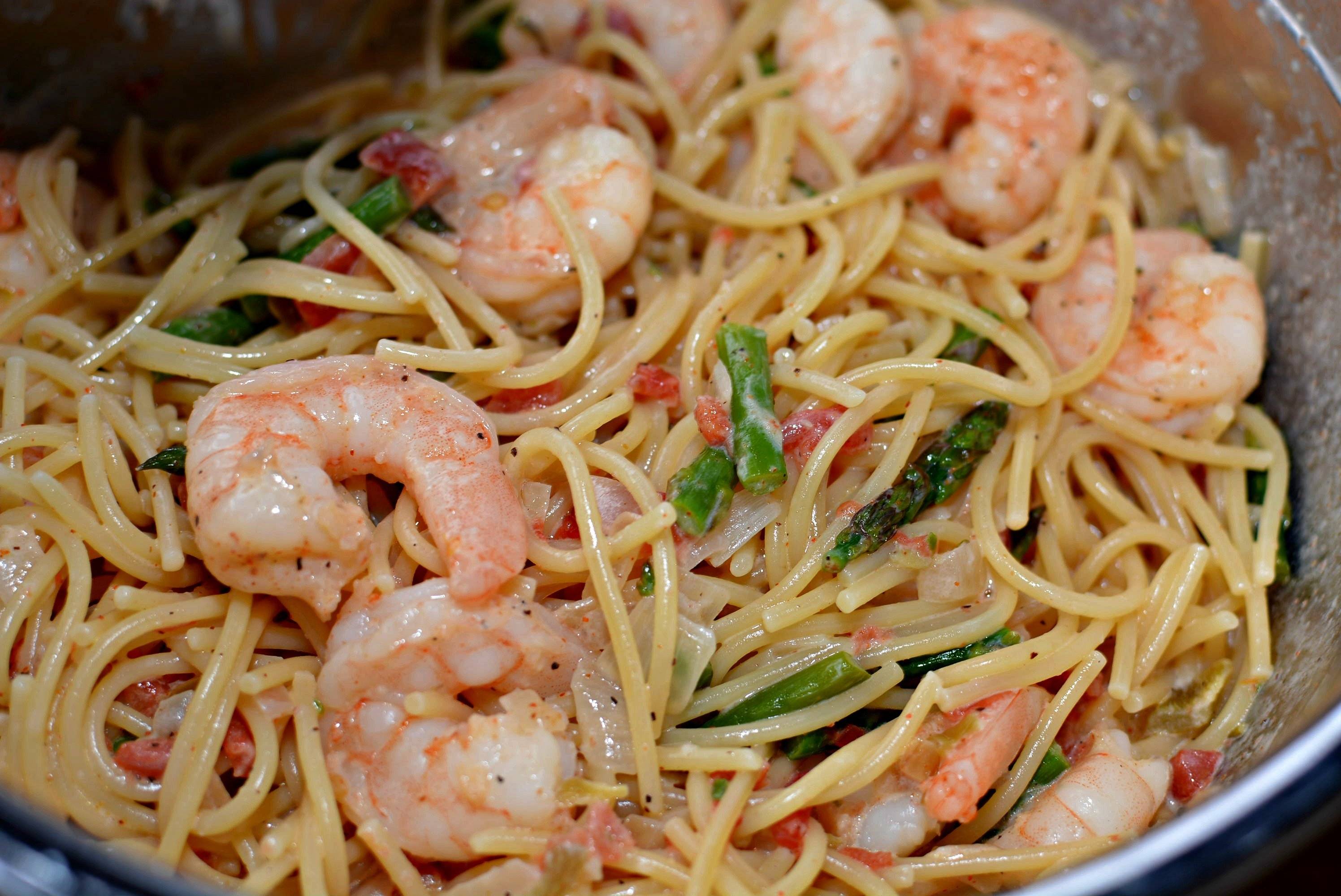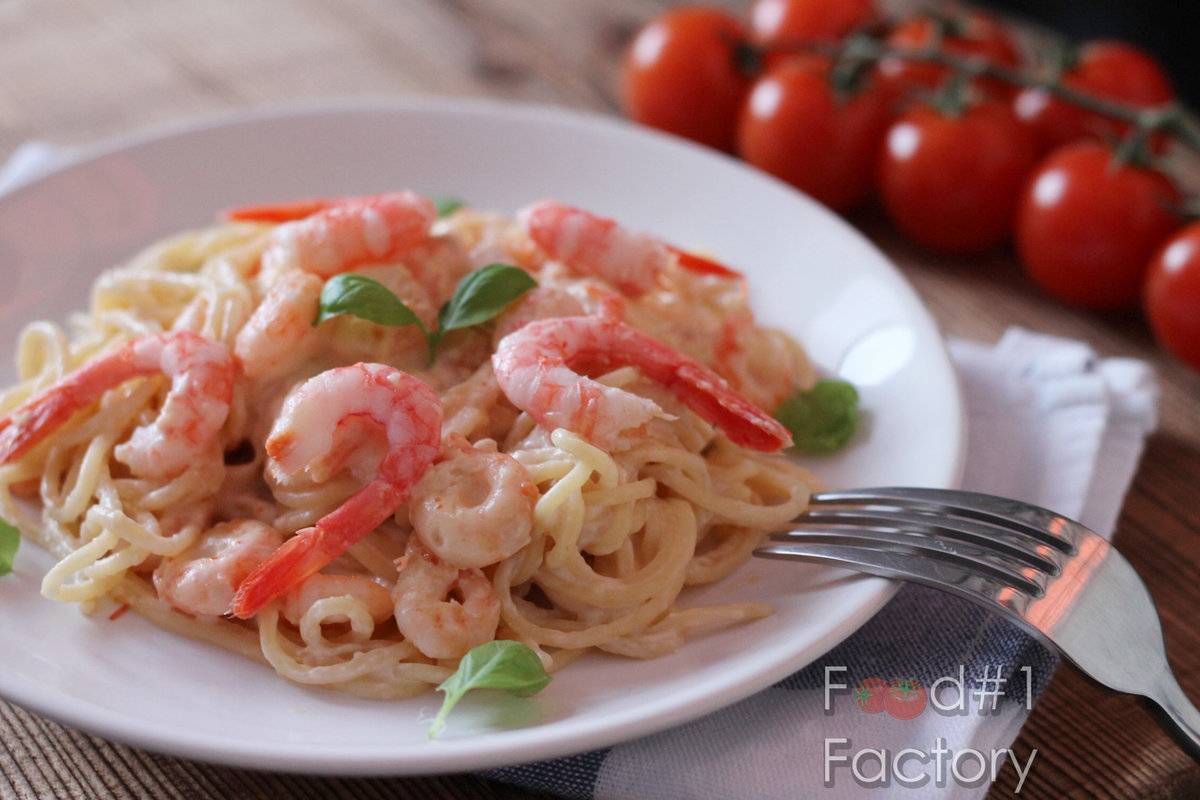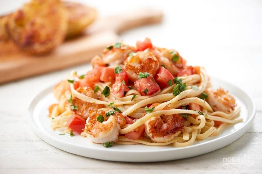 Очень вкусный рецепт пасты с курицей, креветками в соусе из сливок