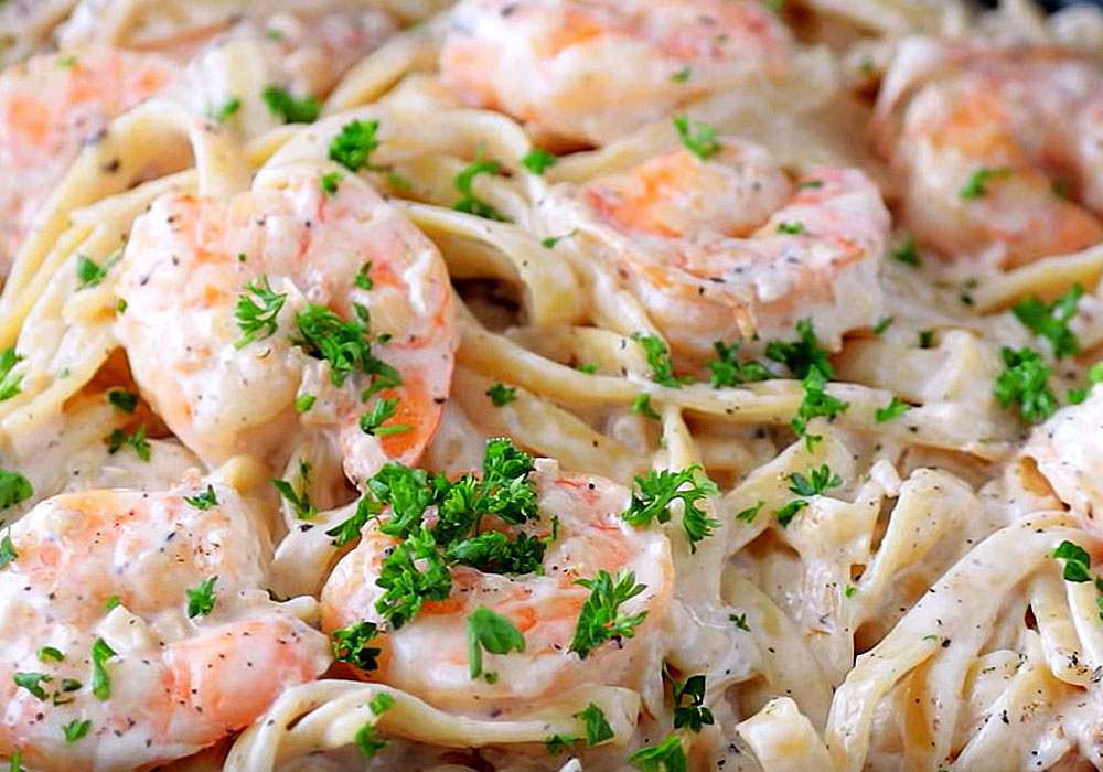 Используемая в рецепте паста – широкие и тонкие полоски лапши. Креветки обязательно использовать крупные, они служат естественным украшением блюда.